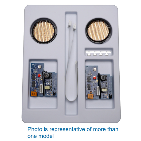 OEM ultrasonic sensor kit in plastic tray containing two sensor grills, circuit boards, ribbon cable, and mounting clips.PID 606785LF – Series 7000 OEM Kit